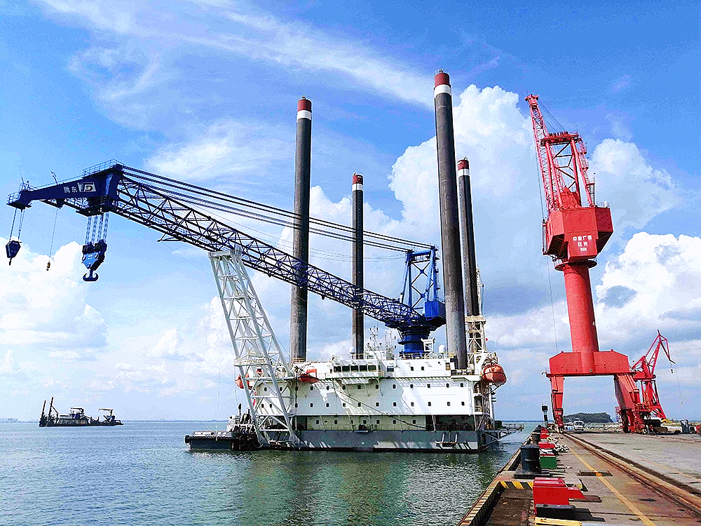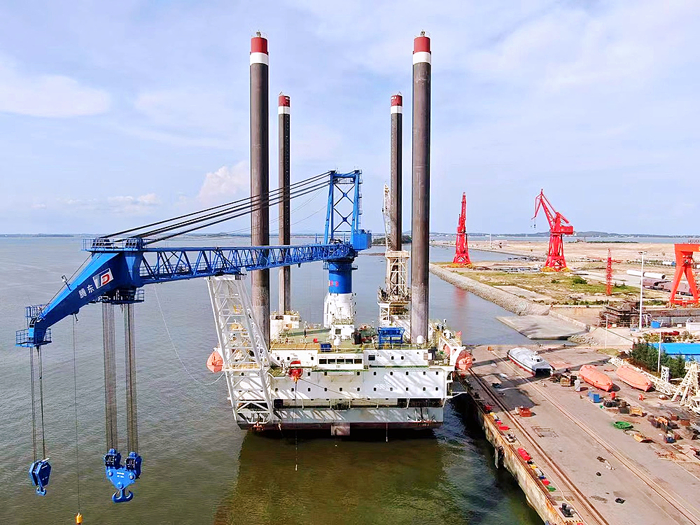 由子公司潤邦重機為深圳聯合海洋新能源科技有限公司設計建造的GENMA 600噸全回轉海洋起重機近日完成交付。該海洋起重機安裝于“德盛287(現名騰東001)”風電安裝平臺,主要用于海上風電塔筒、葉片和主機的安裝作業。