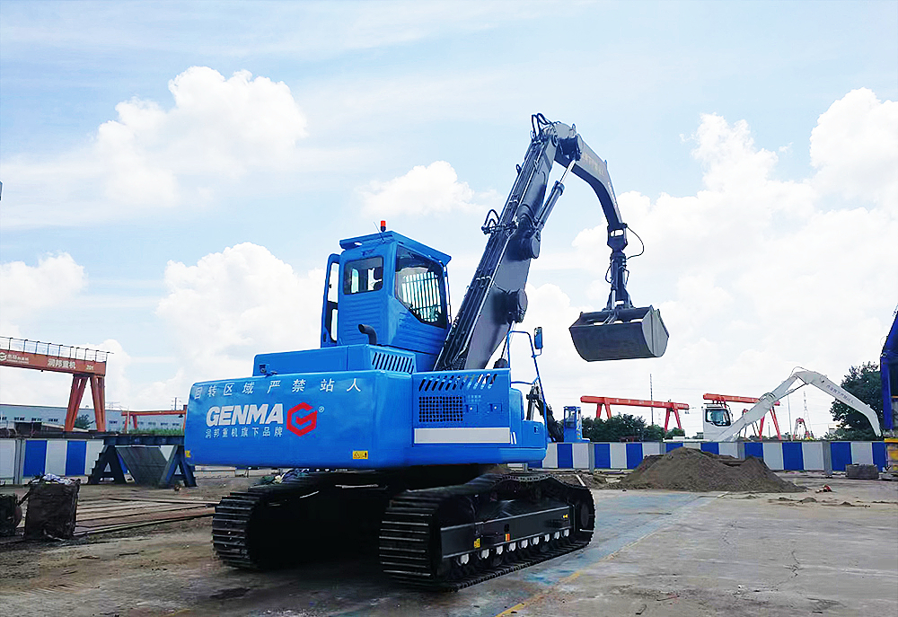 由潤邦重機自主研發(fā)制造的兩臺GENMA 42噸履帶式全液壓抓料機在河北唐山客戶現(xiàn)場正式交付。