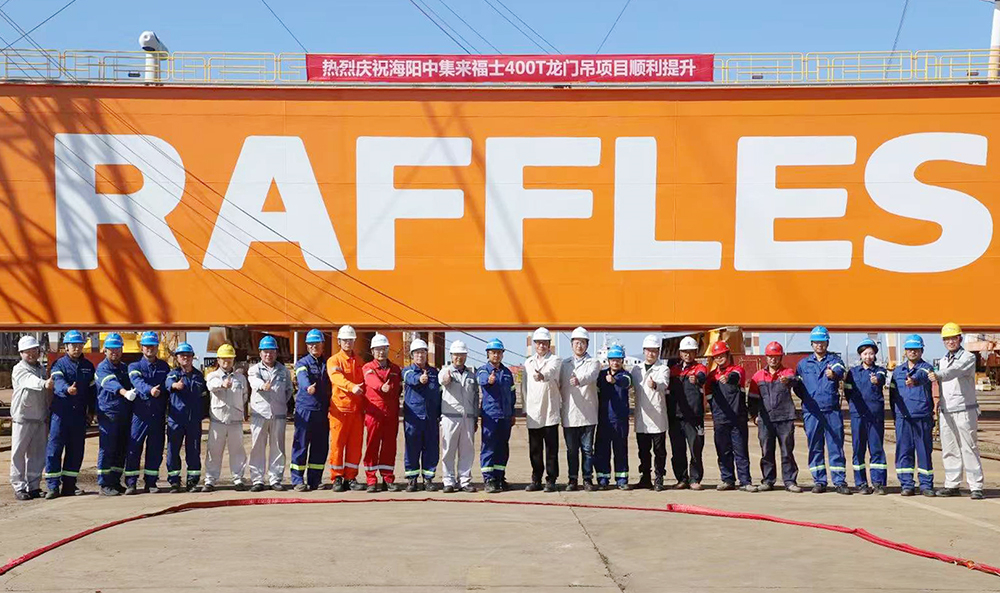 近日,由潤邦重機為海陽中集來福士海洋工程有限公司傾力打造的一臺GENMA400噸造船門式起重機(簡稱:門式起重機)順利交付。該產品主要用于船舶制造過程中的吊裝作業,具備良好的升降、定位、調運功能。