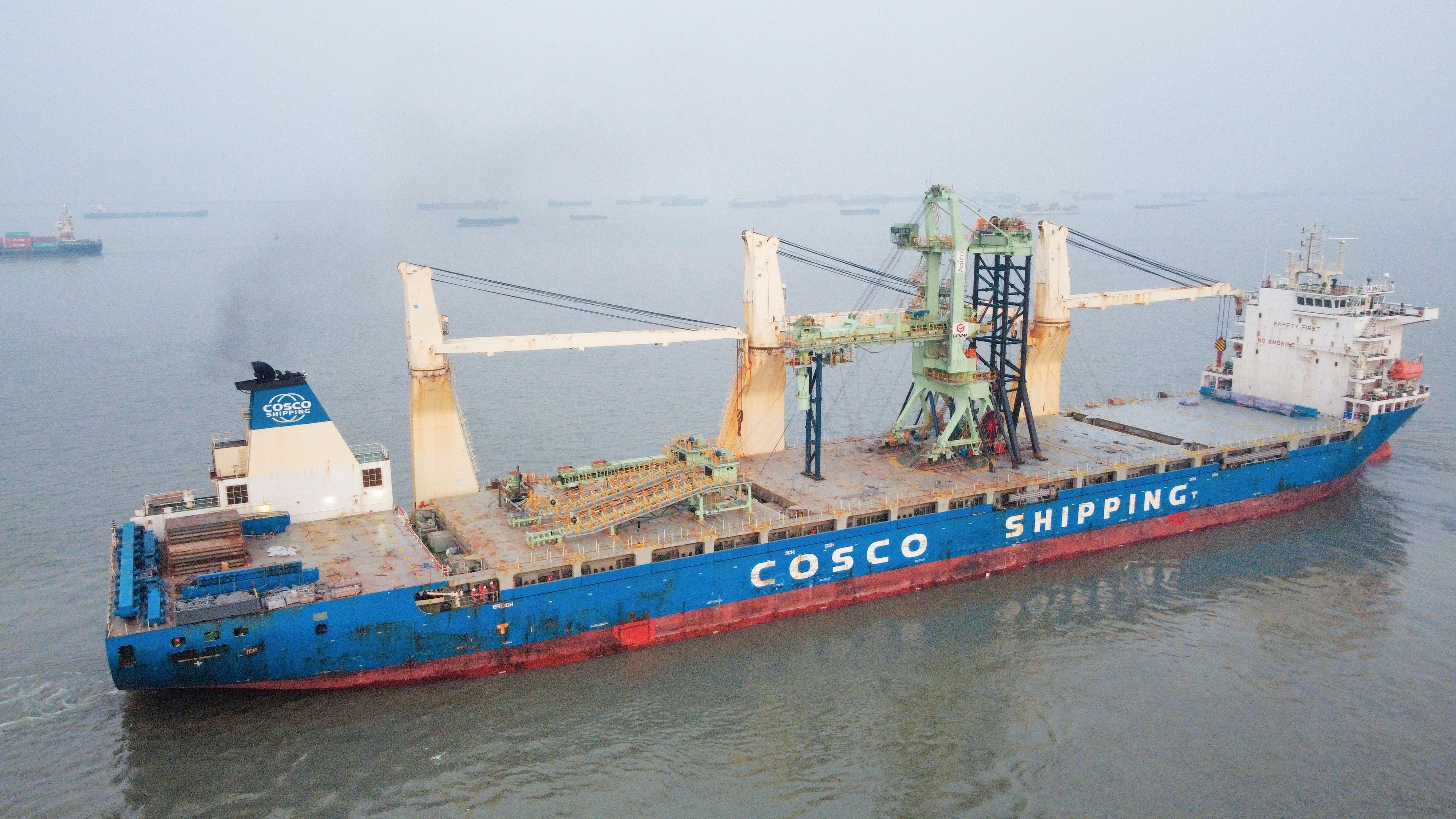 近日,由子公司潤邦重機為印尼客戶設計建造的一臺GENMA裝船機順利啟程,遠赴海外。該設備專為高效轉運棕櫚殼和棕櫚粕物料而設計,額定作業效率高達1,000噸/小時。