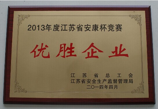 近日,江蘇省總工會(huì)表彰了2013年度全省“安康杯”競賽先進(jìn)集體和個(gè)人,公司從全省25458家企事業(yè)單位中脫穎而出,榮獲江蘇省“安康本”競賽“優(yōu)勝企業(yè)”稱號。