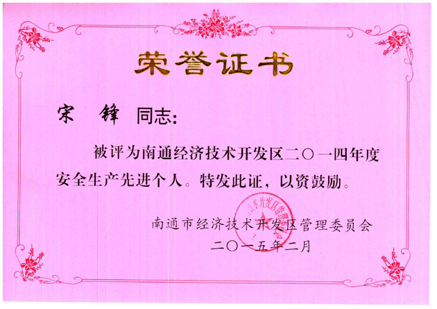 公司安全環境部部長宋鋒被評為“安全生產先進個人”。