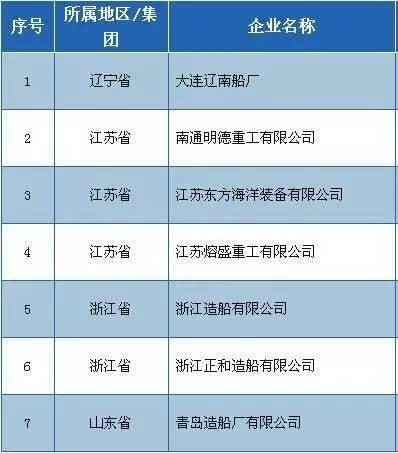【附】符合《船舶行業(yè)規(guī)范條件》企業(yè)名單(全部70家)