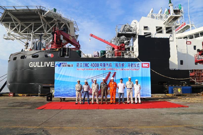 子公司潤(rùn)邦海洋為荷蘭Royal IHC建造的4000噸自航重吊船順利舉行開(kāi)航儀式。NORMALUX船東、Royal IHC代表及公司高層出席了開(kāi)航儀式。