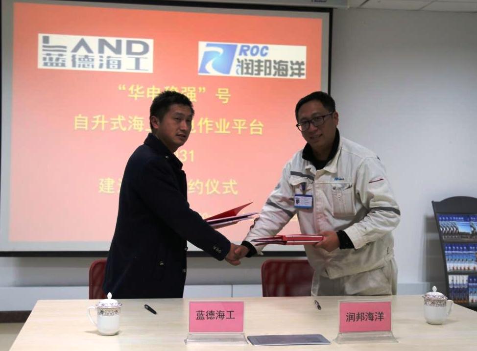 近日,子公司潤邦海洋與江蘇藍德海洋工程有限公司成功簽約“自升式海上風電作業平臺(“華電穩強”號)”項目。