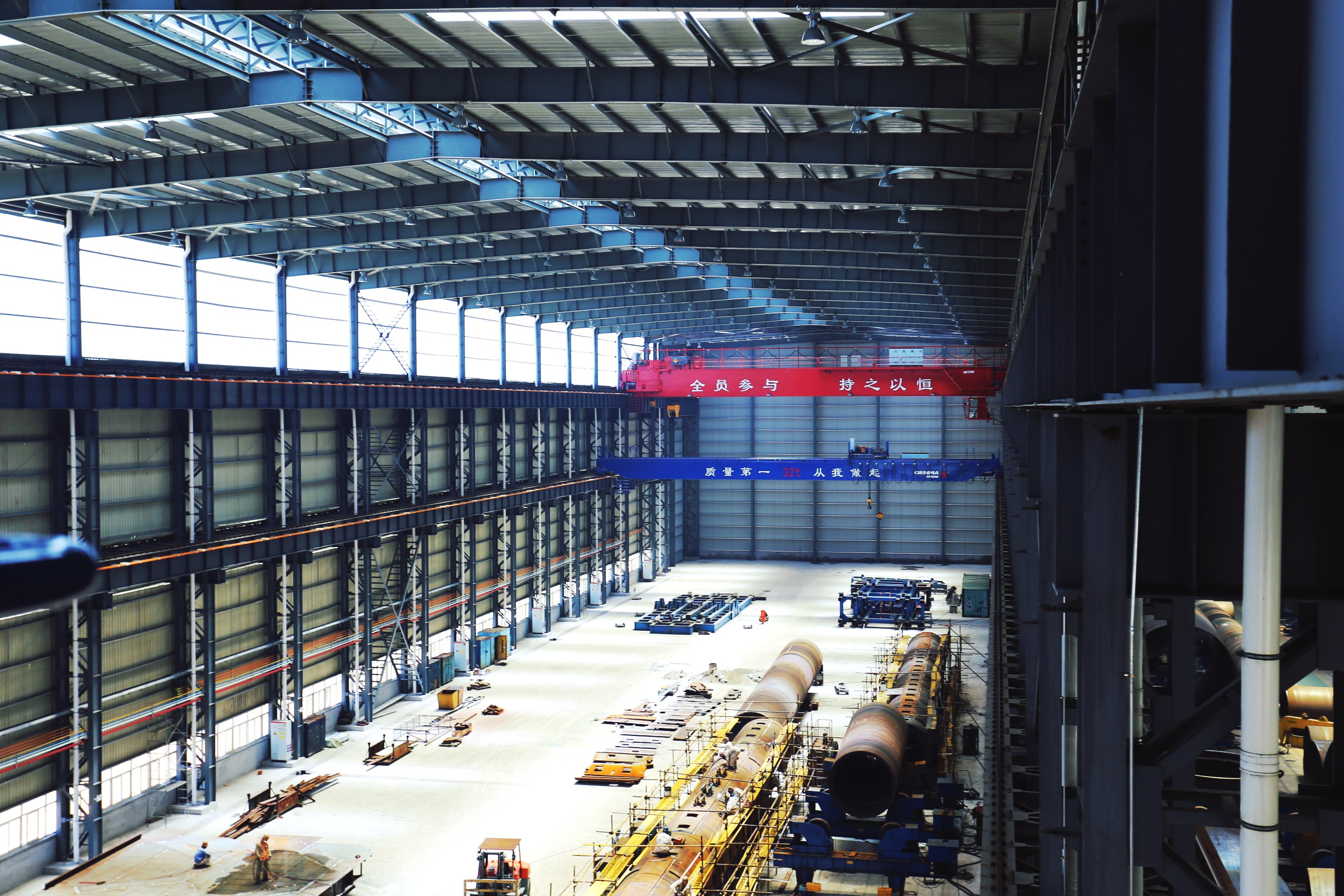 該車間主要用于風電鋼結構升級改造項目,形成年產海上風電裝備和石油模塊5萬噸的生產能力。