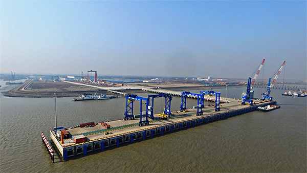 潤禾碼頭擁有5萬噸通用泊位一個,泊位長度361m,寬40m,引橋長285.6m,寬32m,設計水底高程-14.3米,碼頭、引橋均載4T/m2,設計荷載是普通件雜貨碼頭的兩倍(一般件雜貨碼頭面層設計荷載每平方米2噸,潤禾碼頭、引橋設計荷載均為每平方米4噸);根據太倉港長江岸線的特殊情況,設計了后場陸域和碼頭面同樣的高程,可滿足重、特大件整機滾裝發運要求。碼頭投入使用后,公司港口機械和海洋工程起重機等產品將在此碼頭總裝發運出口,將進一步增強公司的整體競爭力和進出口能力,為業務發展奠定扎實基礎。