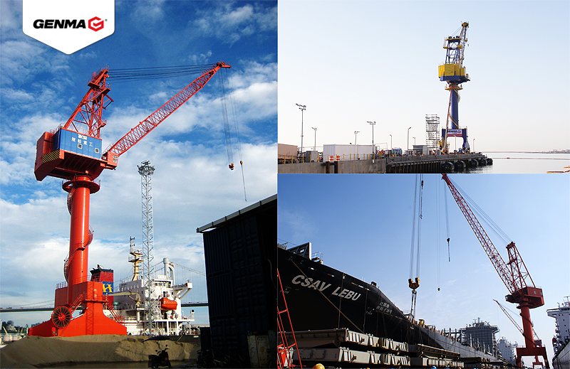 “杰馬/GENMA”品牌單臂架門座式起重機主要應用于船廠、堆場及港口碼頭等區域的物料裝卸和搬運作業,具有整機重量輕、輪壓小和運行平穩等特點。此次提供的兩臺50t門座機專業用于船廠的船舶建造和維修工作,通過各機構間智能化聯動,兩臺設備可協調工作,大大提搞了船廠的作業效率。