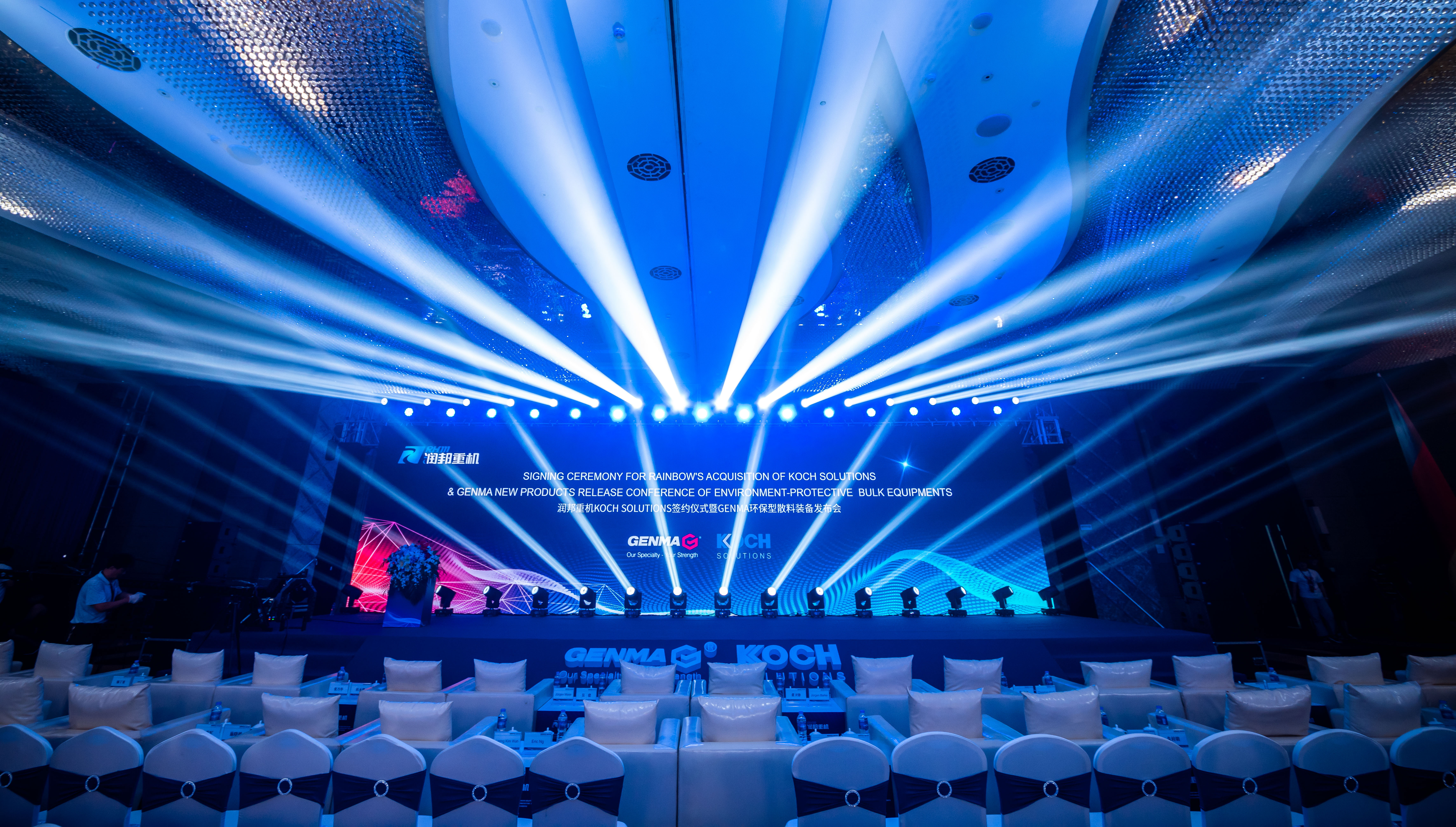 2019年7月9日,南通潤邦重機有限公司(以下簡稱“潤邦重機”)舉辦的Koch Solutions 收購簽約儀式暨“GENMA”環保型散料裝備推介會圓滿落幕,潤邦重機攜“GENMA”品牌糧庫機器人(Gbot)、埋刮板卸船機、懸鏈斗卸船機、門式鏈斗卸船機、鏈斗卸船機、氣力式水泥卸船機、氣力式糧食卸船機等7款產品以及移動式港口起重機新技術重磅亮相。