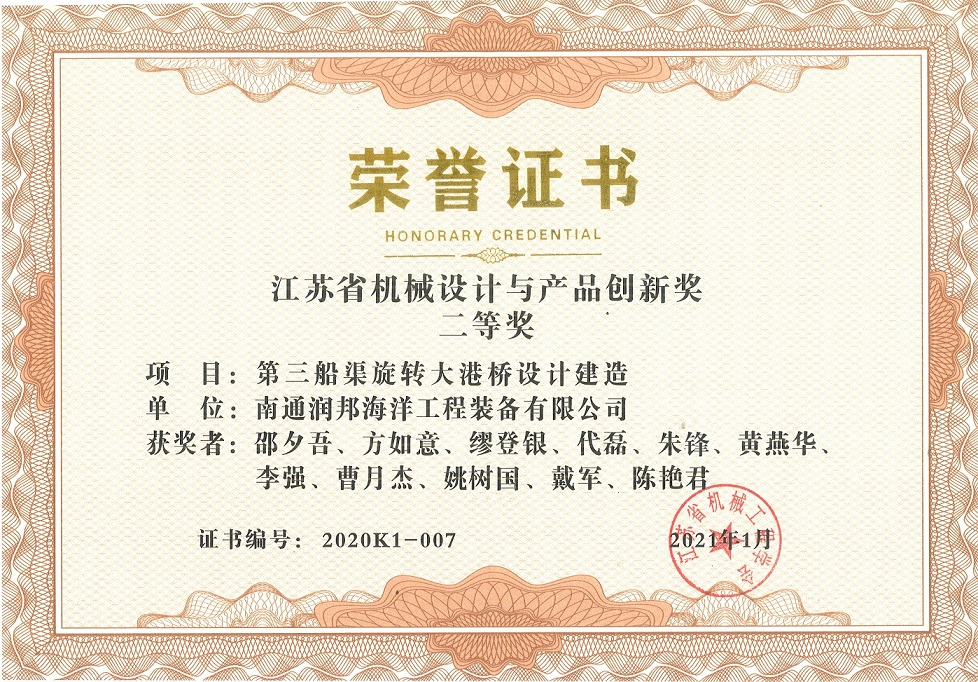 近日,江蘇省機械工程學會發布了《關于2020年江蘇省機械工程科技獎項的通報》,潤邦海洋榮獲多項榮譽。