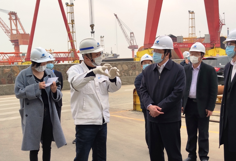 近日,啟東市市委王曉斌書記、高廣軍副市長、海工園區(qū)黃紅春書記等領(lǐng)導(dǎo)赴潤邦海洋,實地調(diào)研企業(yè)復(fù)工復(fù)產(chǎn)、疫情防控等工作情況。