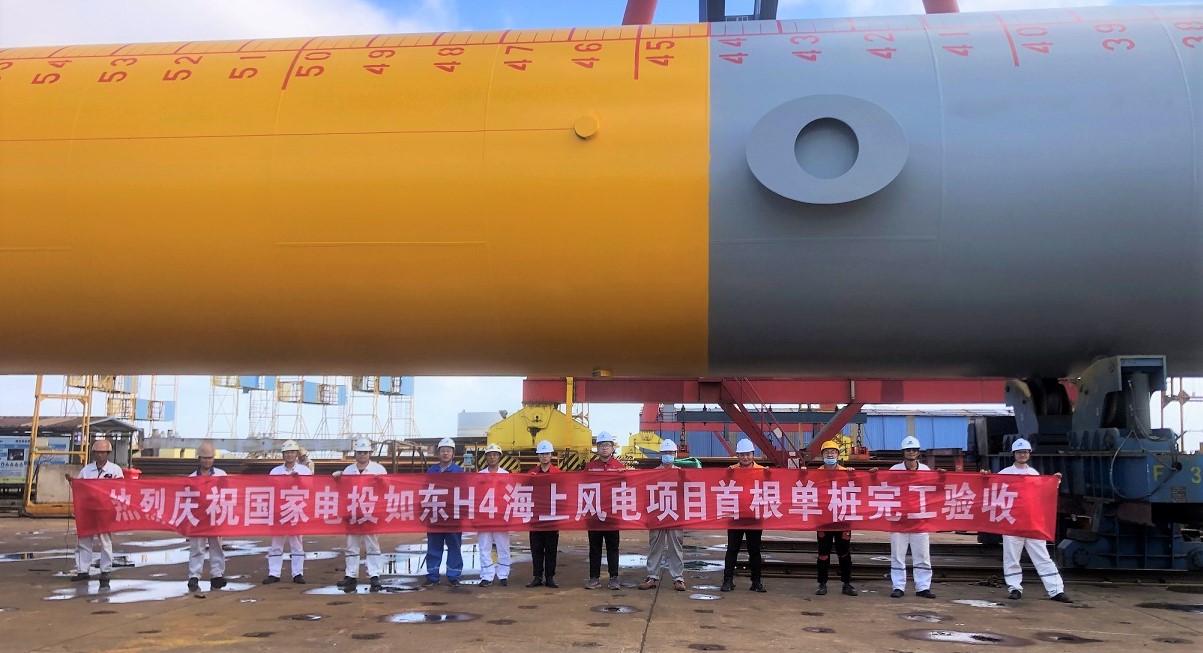 2020年5月23日下午,業(yè)主單位、總包單位,監(jiān)理單位以及設(shè)計單位,在潤邦海洋舉行了啟東H1海上風(fēng)電項目首根鋼管樁出廠驗收會。