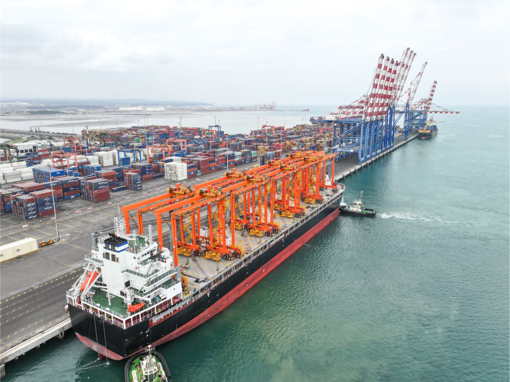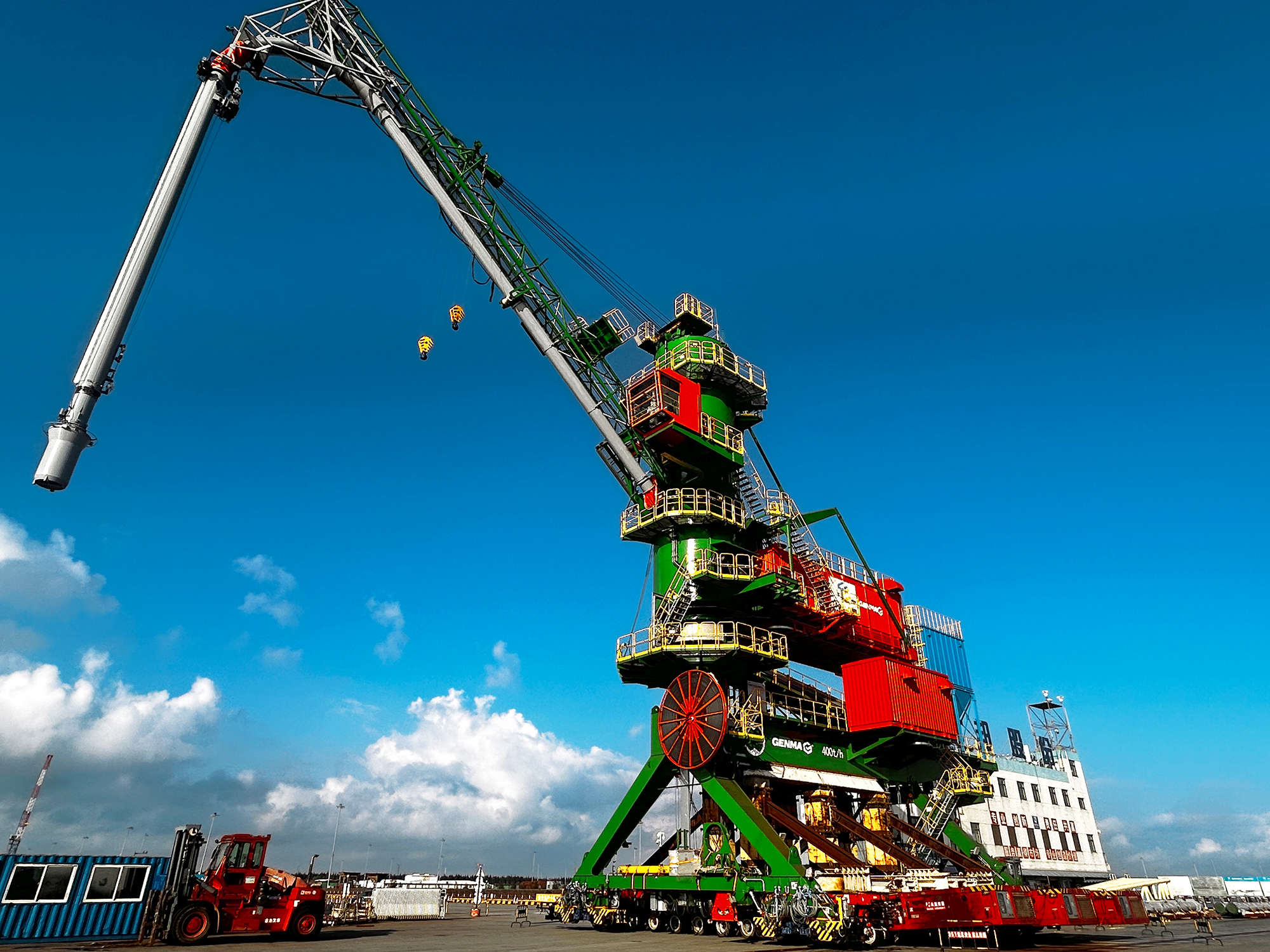 春節期間,潤禾碼頭沿線一片繁忙景象。在現場項目團隊成員的堅守與努力下,GENMA品牌順利發運3臺移動式港口起重機(MHC)。該3臺GENMA品牌MHC由子公司潤邦重機生產制造。