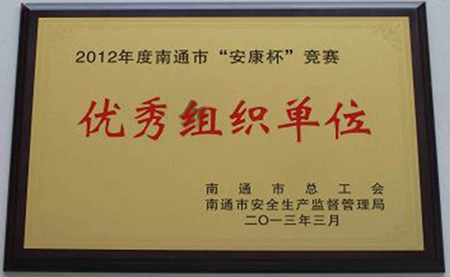 近日,公司獲得了由南通市總工會和南通市安全生產監督管理局聯合授予的“2012年度南通市‘安康杯’競賽優秀組織單位”稱號。