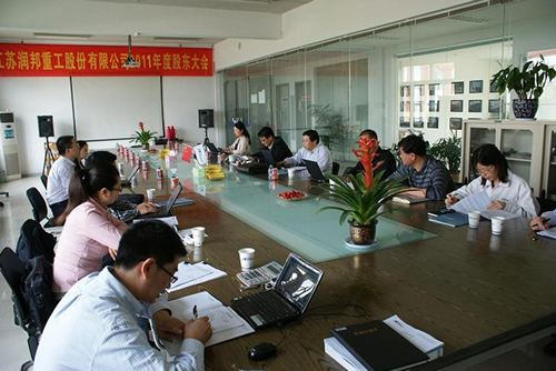 2012年5月11日,江蘇潤邦重工股份有限公司在公司會議室召開了2011年度股東大會。大會由公司董事長吳建先生主持。