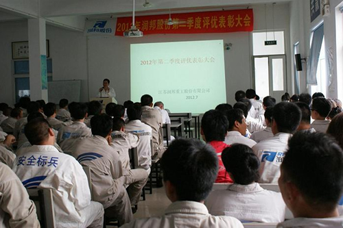2012年7月9日,潤邦股份舉行了2012年第二季度評優表彰大會。在會上,安全環境部、品質部、生產部、市場部以及公司辦成本科的有關負責人分別就公司的安全、質量、生產、市場、成本等情況進行了分析總結,并向獲得安全標兵及先進班組獎、品...