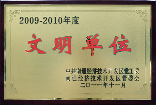 近日,江蘇潤(rùn)邦重工股份有限公司獲得了南通開發(fā)區(qū)黨工委和管委會(huì)聯(lián)合授予的2009—2010年度“文明單位”的稱號(hào)。