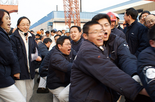 2011年12月31日下午,公司在南大門廣場(chǎng)舉行拔河比賽。由各車間、部門以及普騰分公司組成的12支參賽隊(duì)參加了本次比賽。經(jīng)過輪番的激戰(zhàn),最終,一車間一隊(duì)以壓倒性的優(yōu)勢(shì)奪得第一名,四車間一隊(duì)和辦公室二隊(duì)分獲二、三名。