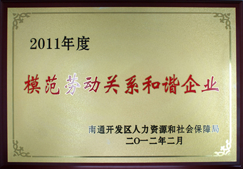 近日,在南通開發(fā)區(qū)人力資源和社會(huì)保障局組織召開的構(gòu)建和諧勞動(dòng)關(guān)系暨高技能人才培養(yǎng)工作會(huì)議上,江蘇潤(rùn)邦重工股份有限公司被授予“2011年度模范勞動(dòng)關(guān)系和諧企業(yè)”的光榮稱號(hào)。