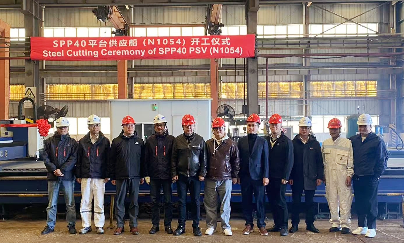 近日,子公司潤邦海洋承接的SPP40平臺供應船又一艘船N1054順利舉行了開工儀式,國銀金租、思佰科、BV船級社、潤邦海洋等相關領導出席。