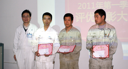 4月15日,公司培訓樓三樓,潤邦股份舉行了2011年第一季度評優表彰大會。大會由人力資源科肖爭主持。安全環境部部長宋鋒首先作了第一季度安全報告,并為安全標兵及先進班組頒獎。