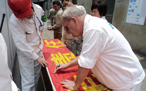 6月7日,食堂北側,安全環境部組織進行了“安全在我心中,安全責任簽名”活動?;顒拥玫搅藦V大員工的積極響應,一線員工、車間主任、公司領導紛紛拿起手中的筆在書有“安全責任,重在落實”的條幅上,鄭重寫下自己的名字
