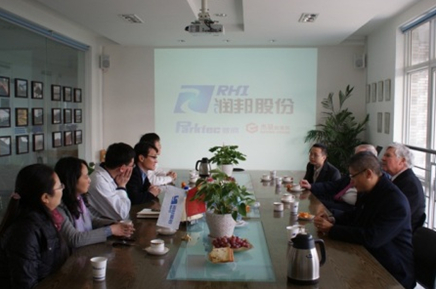 12月8日上午,潤邦股份董事長吳建先生在公司CARGOTEC會議室親切接待了凱雷投資集團創始人之一、凱雷集團董事總經理威廉·康威先生(William E. Conway)一行,吳建董事長向威廉·康威先生詳細介紹了公司最新的生產運營情況