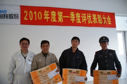 4月16日,潤邦股份在培訓三樓召開公司2010年第一季度評優表彰大會,大會首先通過PPT模式向各位員工通報了公司第一階段安全形勢并由安全環境部部長頒發了第一季度安全達標團隊及安全標兵獎項