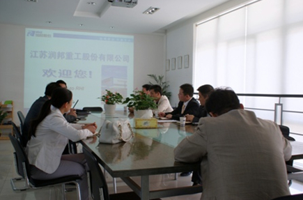 2010年4月23日上午,南通市經濟貿易委員會趙立新副主任一行3人來公司調研,公司吳建對潤邦股份近幾年的快速發展及所取得的令人矚目的成績表示肯定,同時指出公司前階段進入南通市大企業辦的申請材料已經得到核準