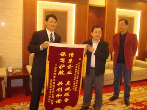 11月4日,江蘇潤邦重工股份有限公司董事長吳建前往南通工商行政管理局贈送錦旗,吳總將寫有“情系企業 真誠服務 保駕護航 共創和諧”的錦旗交到了南通工商行政管理局領導的手中,對工商行政管理局在公司更名過程中給予的幫助表示感謝。