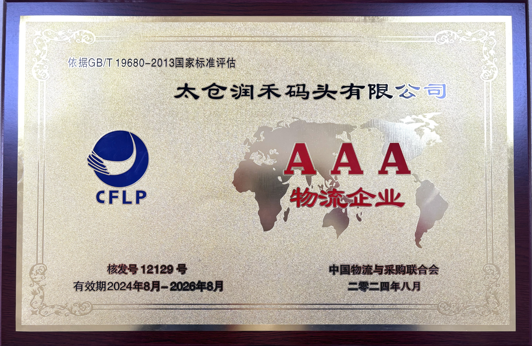 近日,潤邦股份旗下潤禾碼頭順利通過“AAA級物流企業”評定,獲得中國物流與采購聯合會頒發的AAA級物流企業資質證書。