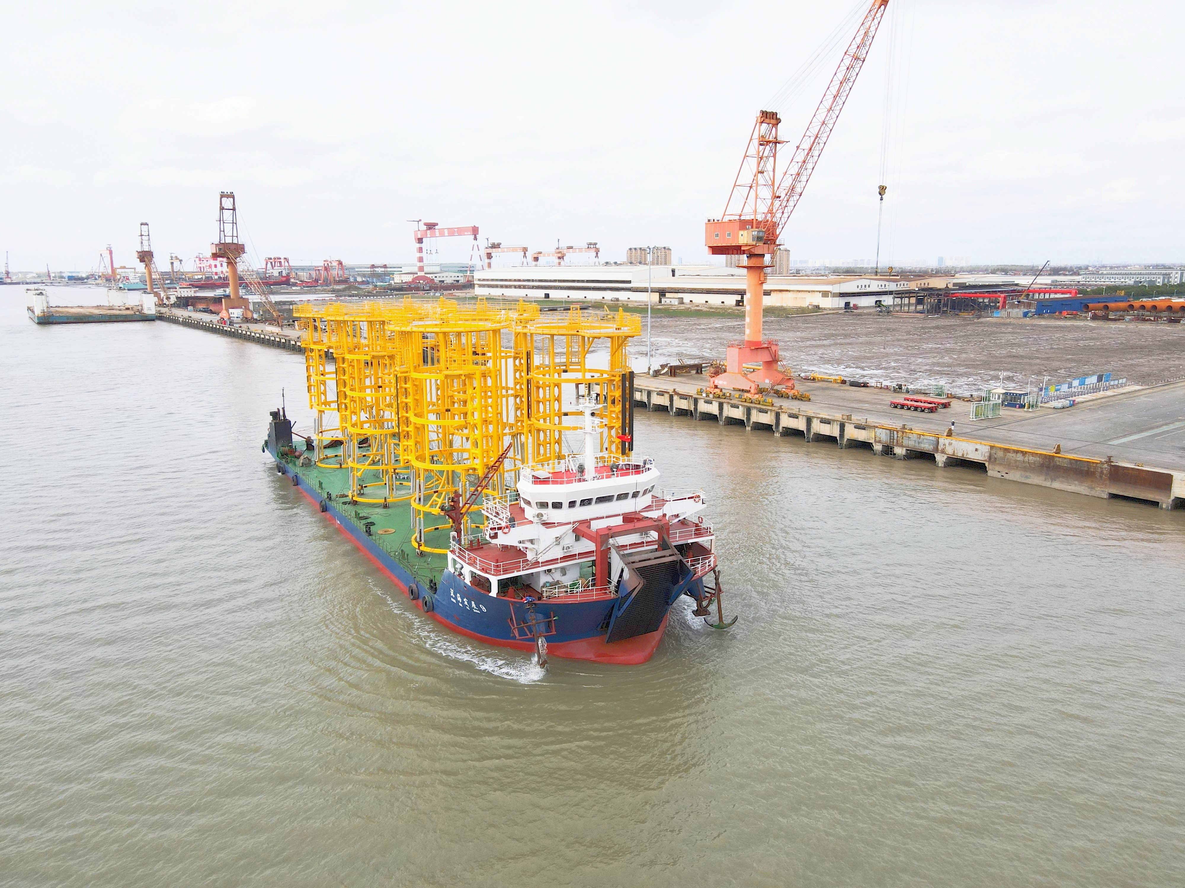 近日,子公司潤邦海洋為中交一航局建造的多套海上風電套籠順利發運,單個套籠長14.34米,寬12.36米,高23.24米,單重101噸。此項目將運用于三峽天津南港海上風電示范項目。