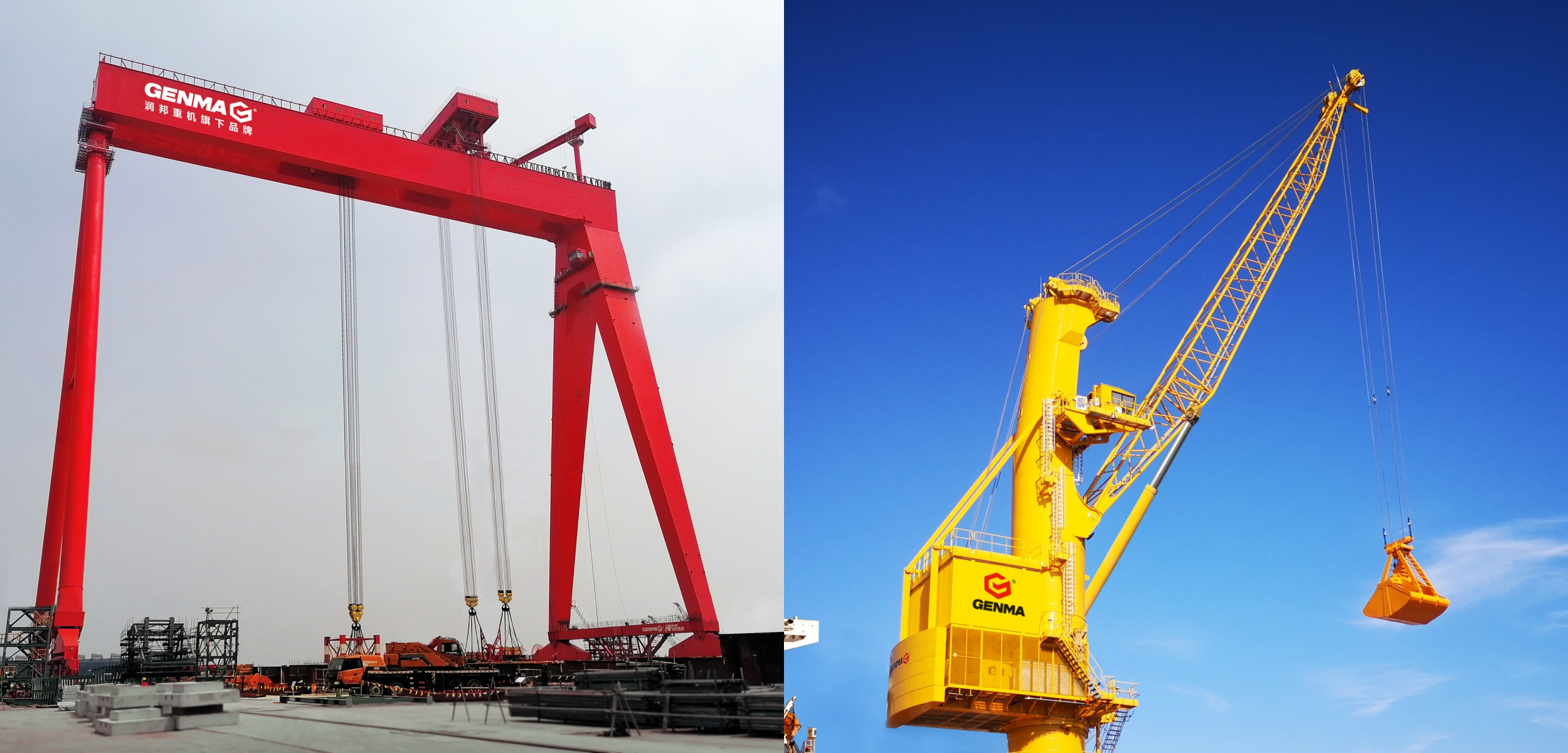 近日,子公司潤邦重機為造紙行業客戶再次提供的四臺GENMA橋式抓斗卸船機已順利落軌客戶碼頭。