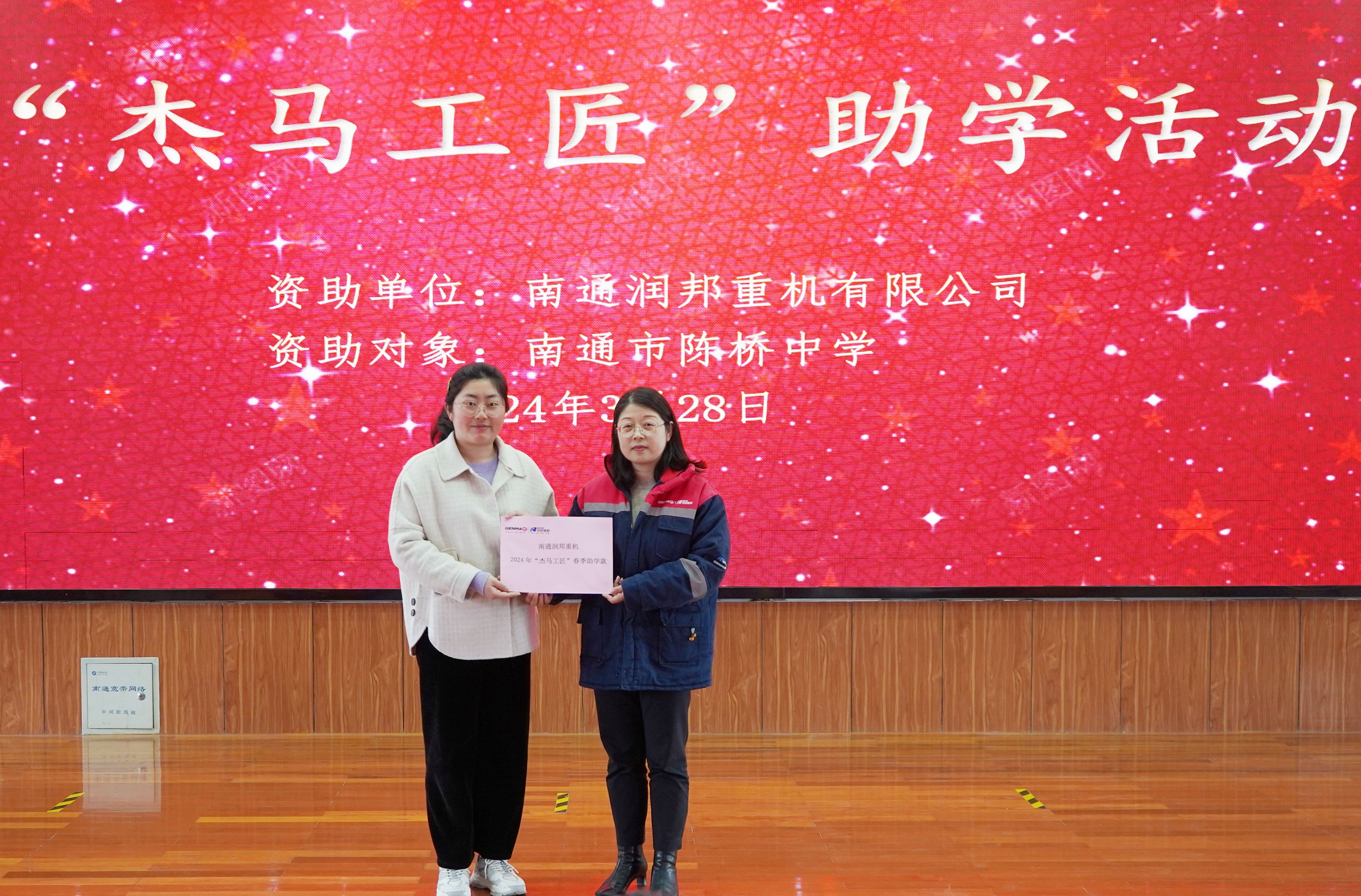 近日,子公司潤邦重機工會主席帶著滿滿的愛心前往南通市崇川區陳橋中學,開展了一場溫馨的愛心捐贈活動。這次活動特別為10名品學兼優但家庭困難的學子送去了愛心助學款,讓孩子們深切感受到了來自社會的溫暖和關懷。
