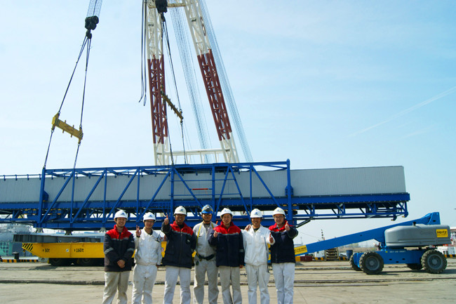 近日, 由潤(rùn)邦重機(jī)為緬甸某港口傾力打造的“杰馬”品牌移動(dòng)式港口起重機(jī)順利完成吊裝,這是繼公司2014年推出國(guó)內(nèi)首臺(tái)移動(dòng)式港口起重機(jī)后的又一扛鼎力作。