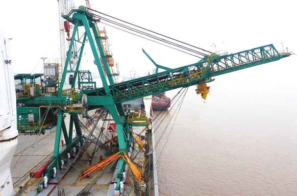 近日,由子公司潤邦重機為山特維克傾力打造的一臺A型伸縮臂式裝船機順利駛離發運碼頭,這也是潤邦重機與山特維克合作的第三臺裝船機項目。該裝船機自重700噸,臂長41.9米,裝載速度每小時6000噸,最終將發運到美國Canpotex鉀肥裝運。碼頭...
