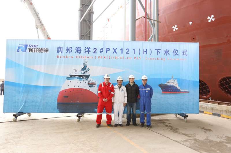 近日,子公司潤邦海洋2#PX121(H)83.4m PSV于2#船臺成功下水,這是繼首制船后又一條在建PSV成功下水,后續建造將穩步進行。