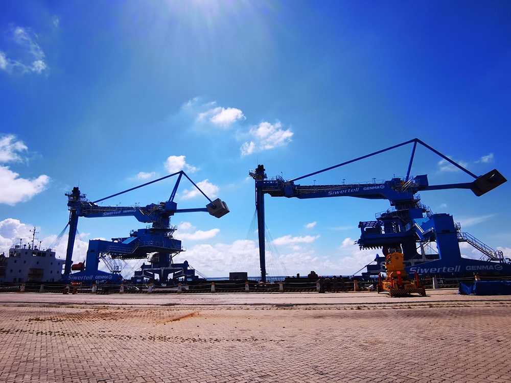 兩臺1800tph Siwertell GENMA雙品牌螺旋卸船機成功落軌客戶碼頭