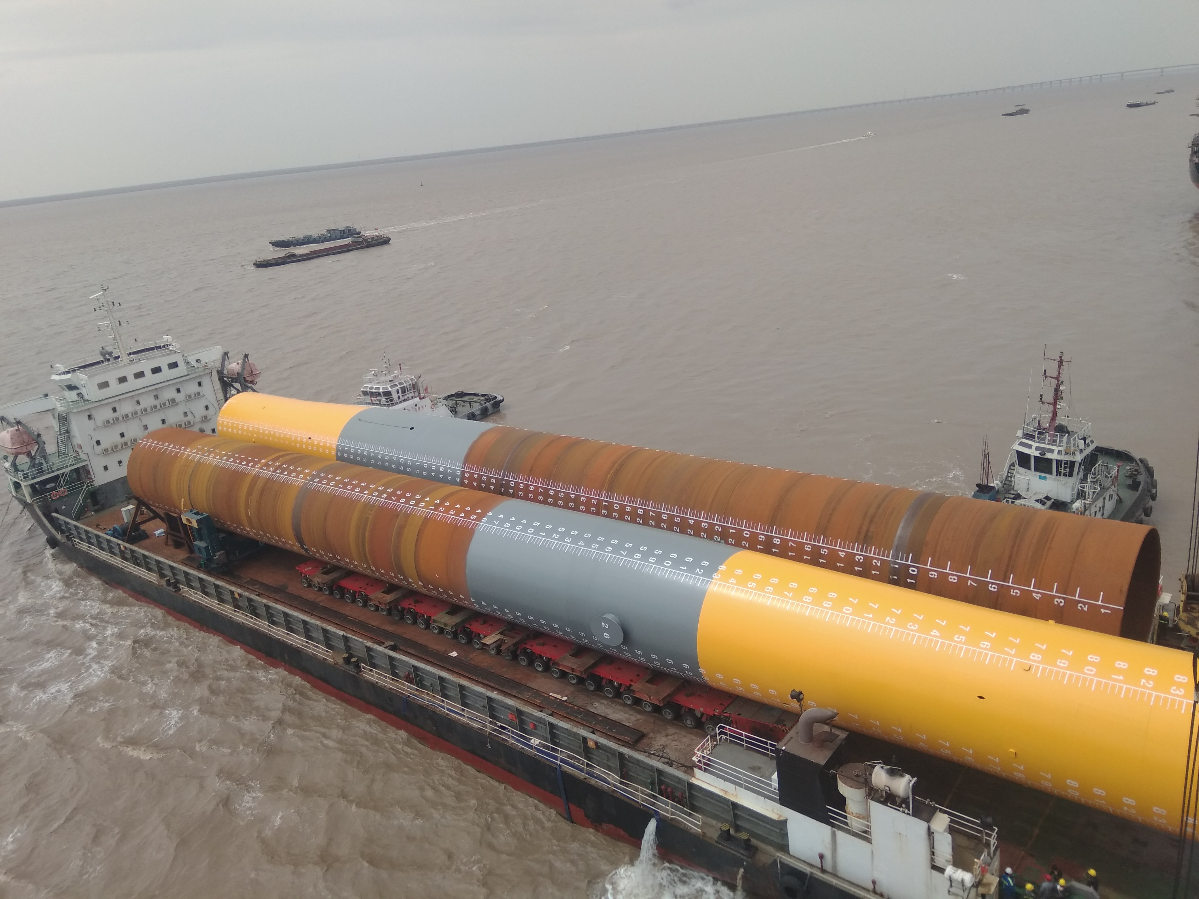 近日,由子公司潤邦海洋制造的超大型海上風電單樁基礎,從啟東海工園碼頭出發運往廣東陽江。