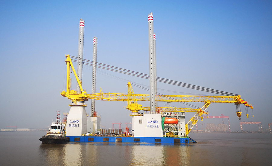 海上風電平臺系統是一型集“海上風電基礎施工、風電塔筒、塔架、機艙、輪轂、葉片”安裝與維護為一體的風電作業平臺,具有作業效率高、技術含量高、配置先進、高效節能、作業條件適應性強等一系列優勢,平臺滿足近海航區作業、無限航區調遣的要求。